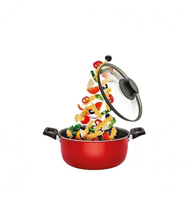 - Faitout 20cm avec couvercle. - Aluminium culinaire et bakélite, couvercle en verre. - Revêtement antiadhésif 5 couches. - Epaisseur 3mm.