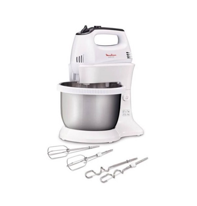 Batteur avec Bol en Gris MOULINEX - Puissance: 𝟑𝟎𝟎 𝐖𝐚𝐭𝐭𝐬 - Capacité bol: 𝟑.𝟓 𝐥𝐢𝐭𝐫𝐞𝐬 - Nombre de vitesses: 𝟓 𝐕𝐢𝐭𝐞𝐬𝐬𝐞𝐬 avec Fonction Turbo - Bol en plastique à rotation automatique - Fouets et pétrins en inox - Couleur: Grix & Inox - 𝐆𝐚𝐫𝐚𝐧𝐭𝐢𝐞: 𝟏 𝐚𝐧