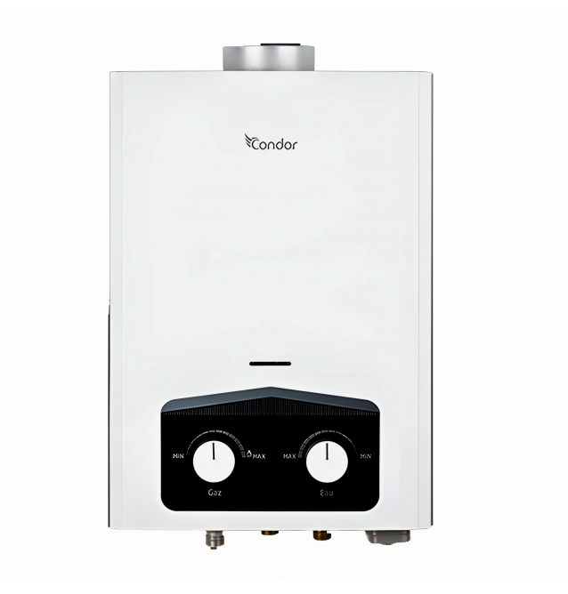 Chauffe Eau Condor CCG-P410 - Type de Gaz : 𝐆𝐚𝐳 𝐍𝐚𝐭𝐮𝐫𝐞𝐥 - Débit d'eau Chaude : 𝟏𝟎 𝐋𝐢𝐭𝐫𝐞𝐬 / 𝐦𝐢𝐧 - Pression de l'eau : 𝟎.𝟐/𝟎.𝟖𝐛𝐚𝐫 - Serpentin En cuivre sans Oxygène - Allumage Multi-connexion (par pille, par Cable) - Démarre même à basse pression d’eau - Afficheur de la température de l’eau de sortie - Réglage de débit du gaz - Réglage du débit de l’eau - Couleur : Blanc - 𝐆𝐚𝐫𝐚𝐧𝐭𝐢𝐞 : 𝟏 𝐚𝐧