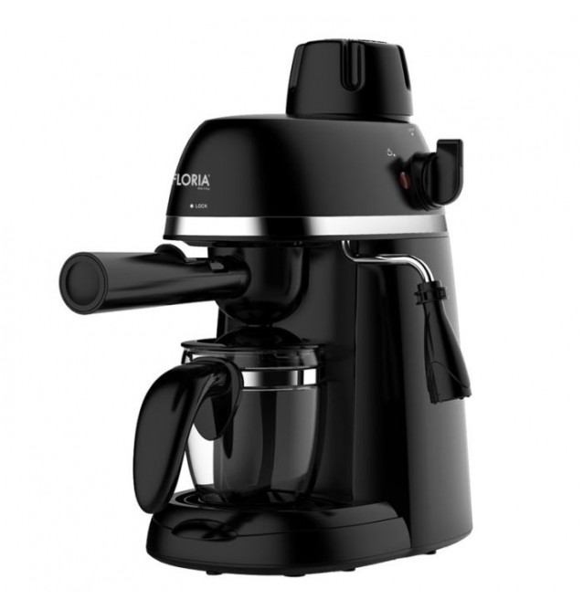 Machine à Café Expresso FLORIA - Puissance: 𝟖𝟎𝟎 𝐖𝐚𝐭𝐭𝐬 - Capacité: 𝟎.𝟐𝟒𝐋𝐢𝐭𝐫𝐞 - 𝟒 𝐭𝐚𝐬𝐬𝐞𝐬 - Pression: 3.5 Bars - Chaudière en alliage d'aluminium moulé sous pression - Avec compteur thermique - Avec dispositif protégé contre la surchauffe et la surpression - Bac de récupération amovible pour un nettoyage facile - Alimentation: 220-240V/50-60hz - Couleur: Noir - 𝐆𝐚𝐫𝐚𝐧𝐭𝐢𝐞 𝟏 𝐚𝐧