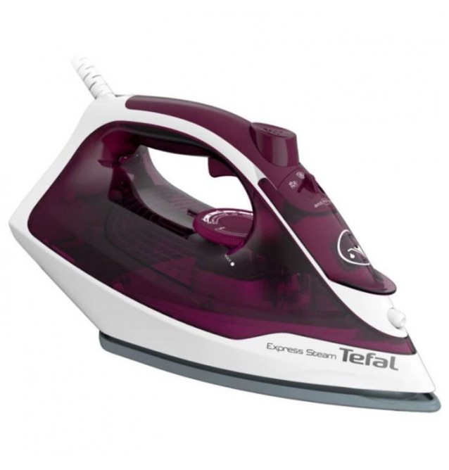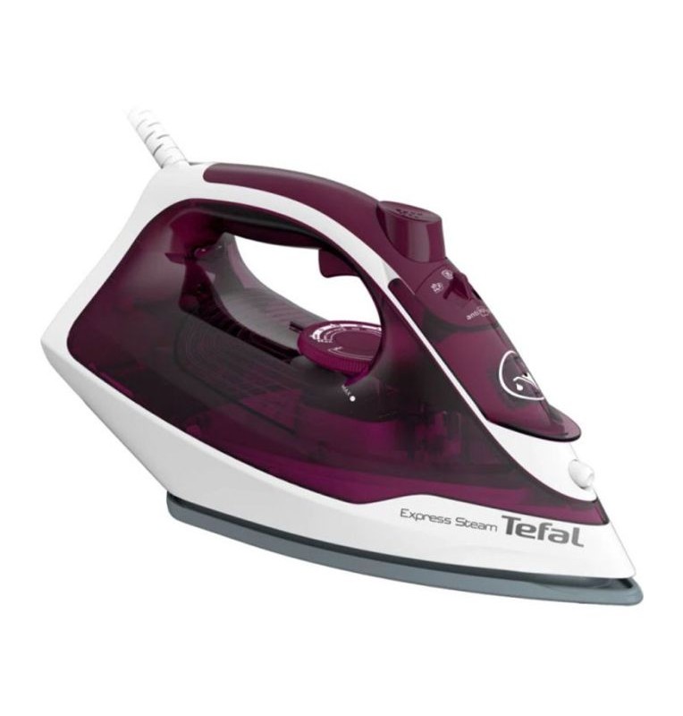 Fer à Repasser TEFAL Express - Puissance : 𝟐𝟒𝟎𝟎 𝐖 - Capacité de réservoir: 𝟐𝟕𝟎𝐦𝐥 - Débit de vapeur: 35 g-min - Coup de vapeur: 160 g-min - Longueur du câble: 1.9 m - Cérillium Technology - Système anti-goutte - Système anti-calcaire - Défroissage vertical - Auto nettoyage - Détartrage - Dimensions: 13 x 15 x 30 cm - Poids: 1.3 kg - couleur: Violet - 𝐆𝐚𝐫𝐚𝐧𝐭𝐢𝐞 𝟏 𝐚𝐧
