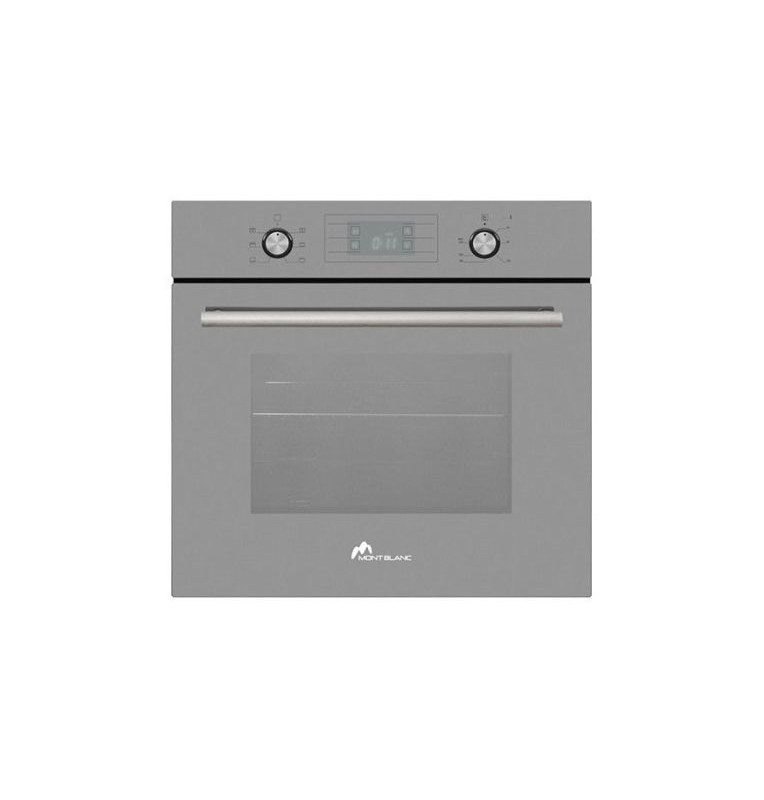 Four Encastrable MONTBLANC Avec Afficheur - Largeur: 𝟔𝟎 𝐜𝐦 - Puissance électrique totale: 2.23 Kw - Ventilateur: 22 Watts - Lampe: 15 Watts - 9 Fonctions - Minuterie mécanique: 90 min - Porte de four amovible en verre - Couleur: Gris Miroir - 𝐆𝐚𝐫𝐚𝐧𝐭𝐢𝐞 𝟐 𝐚𝐧𝐬 .