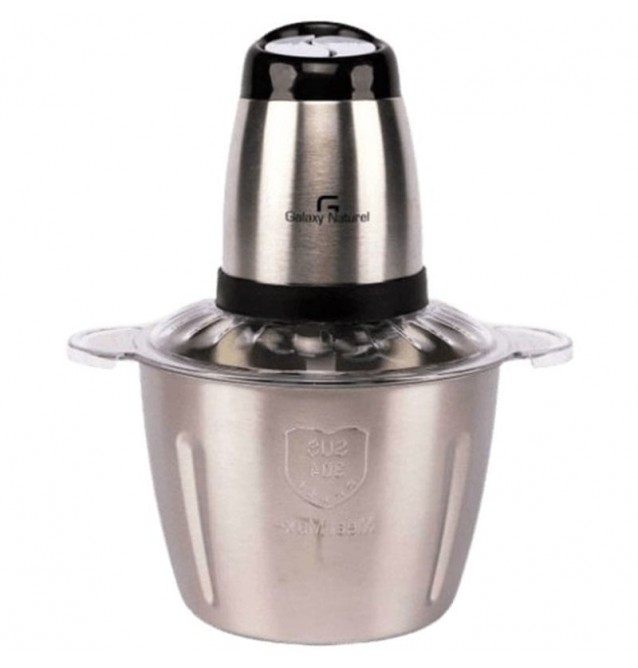 Hachoir électrique inox–Conteneur en 𝐢𝐧𝐨𝐱 – Capacité: 𝟏.𝟖 𝐋𝐢𝐭𝐫𝐞𝐬 –Moteur tout en cuivre–Marque : Galaxy naturel–Couteau : 𝟔 𝐥𝐚𝐦𝐞𝐬 en Acier Inoxydable–Voltage : 𝟐𝟐𝟎 𝐕-𝟐𝟒𝟎 𝐕–𝟓𝟎-𝟔𝟎 𝐇𝐳 –Puissance : 𝟓𝟎𝟎𝐖 – 𝐆𝐚𝐫𝐚𝐧𝐭𝐢𝐞 𝟏 𝐚𝐧