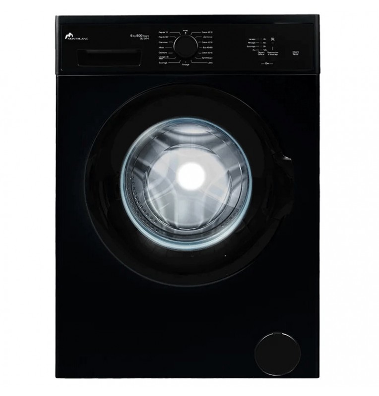 Machine à Laver Mont Blanc - Capacité: 𝟔𝐊𝐠 - Vitesse d'essorage : - Classe énergétique : 𝐀+- Nombre de programmes : 𝟏𝟓 - Tambour inox - Ouverture porte 180° - Fonction lavage sans essorage - Fonction arrêt cuve pleine - Verrouillage enfants - Dimensions : 85 x 60 x 54 cm - Couleur : Noir - 𝐆𝐚𝐫𝐚𝐧𝐭𝐢𝐞 : 𝟐 𝐚𝐧𝐬