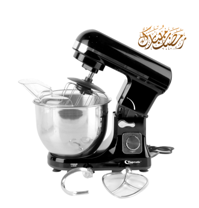 Robot pétrin TOPMATIC - Puissance: 𝟏𝟒𝟎𝟎 𝐖𝐚𝐭𝐭𝐬 - Capacité du bol: 𝟔 𝐋𝐢𝐭𝐫𝐞𝐬 - Nombre de vitesses: 𝟔 𝐯𝐢𝐭𝐞𝐬𝐬𝐞𝐬 - Contrôle de vitesse fluide - Matériau du bol: Acier Inoxydable - Dimensions: 350 x 180 x 303 mm - Poids: 3.8 kg - Couleur: noir- 𝐆𝐚𝐫𝐚𝐧𝐭𝐢𝐞 : 𝟏 𝐚𝐧