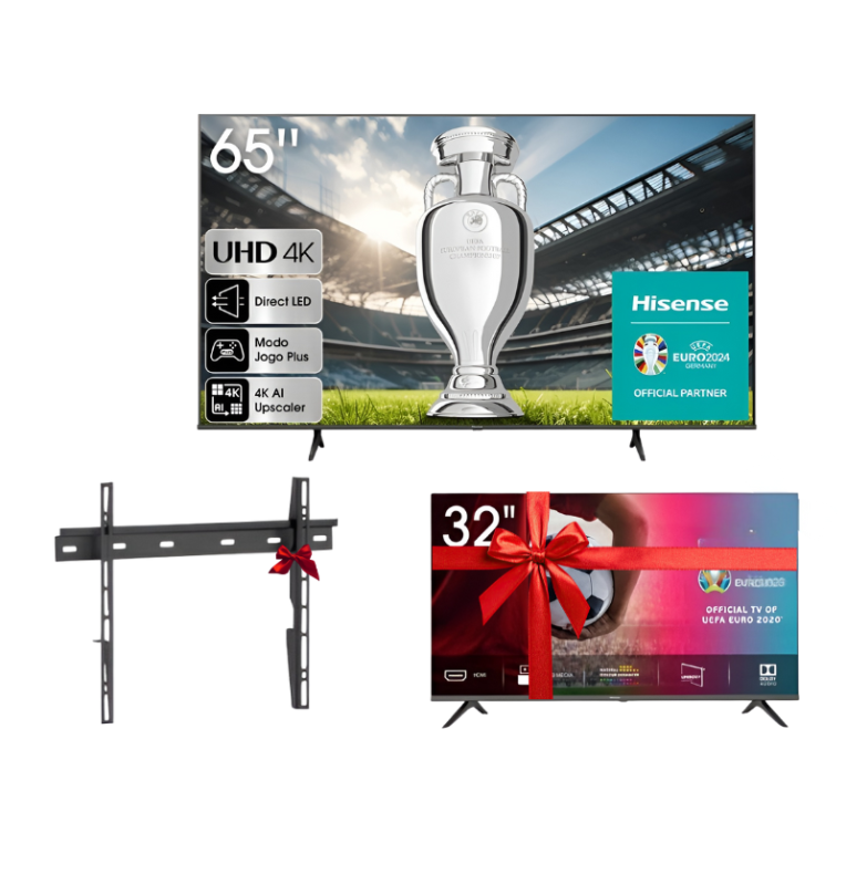 Tv HISENSE 65'' Smart A6K UHD 4K - Résolution: 3840 x 2160px - Système d’exploitation: Vidaa U 6.0 - Processeur: Quad Core - HDR, Dolby Vision, HDR10+, HDR 10, Hybrid Log Gamma (HLG) - Puissance de Sortie audio: 2 x 8W - Effet surround - Télécommande Vocale - Netflix, Youtube, Prime Video... - Connectivité: WiFi, Bluetooth, Ethernet - Connecteurs: 3 x HDMI 2.0, 2 x USB, Sortie Audio S/PDIF, Prise casque, Prises antennes, Entrée Composite (AV), RJ45 - Dimensions: 1452x300x896mm - Garantie: 2 ans